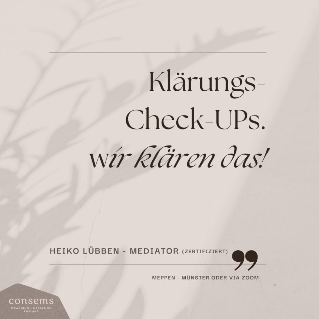 Um Konflikten den Schrecken zu nehmen, gibt es meine Klärungs-Check-Ups.